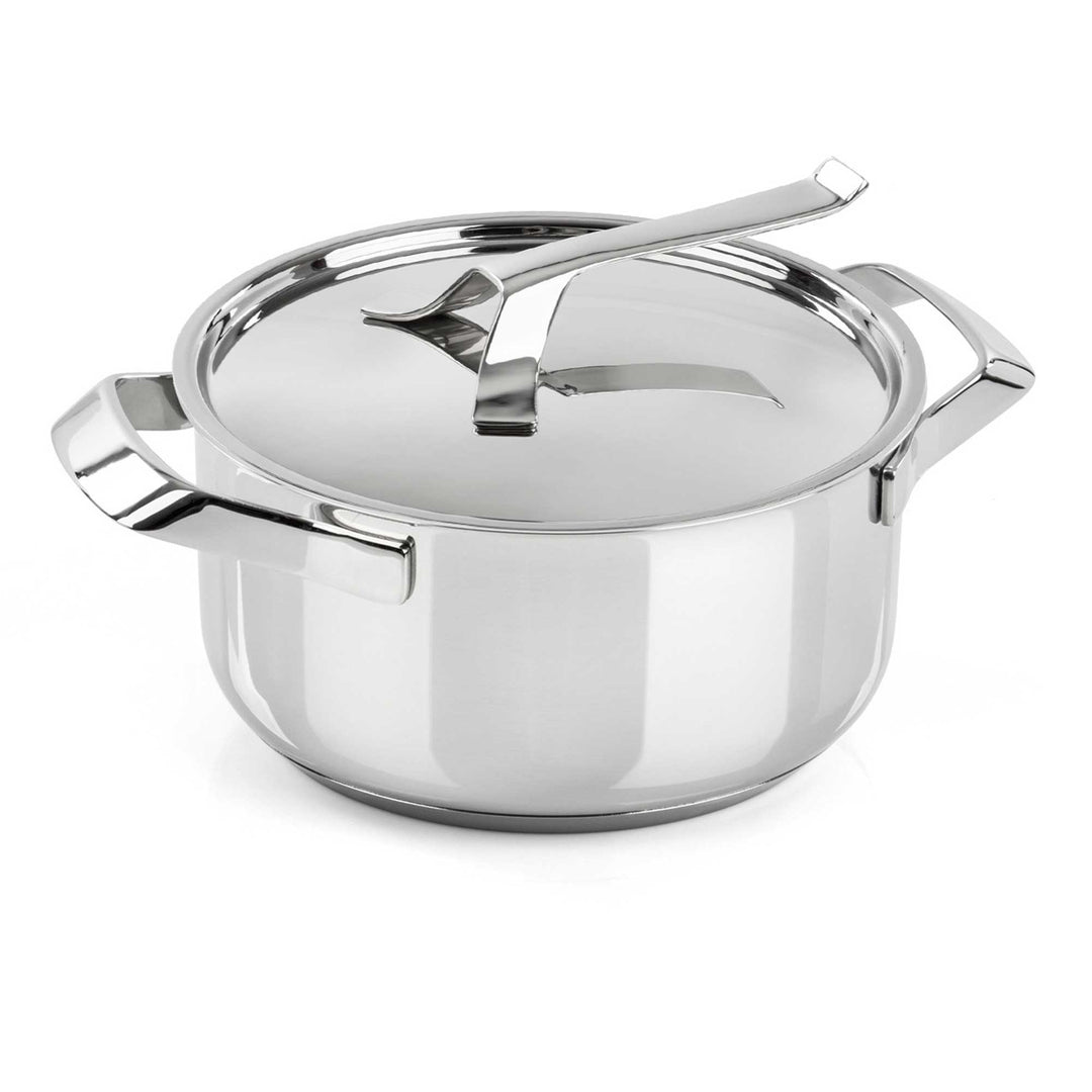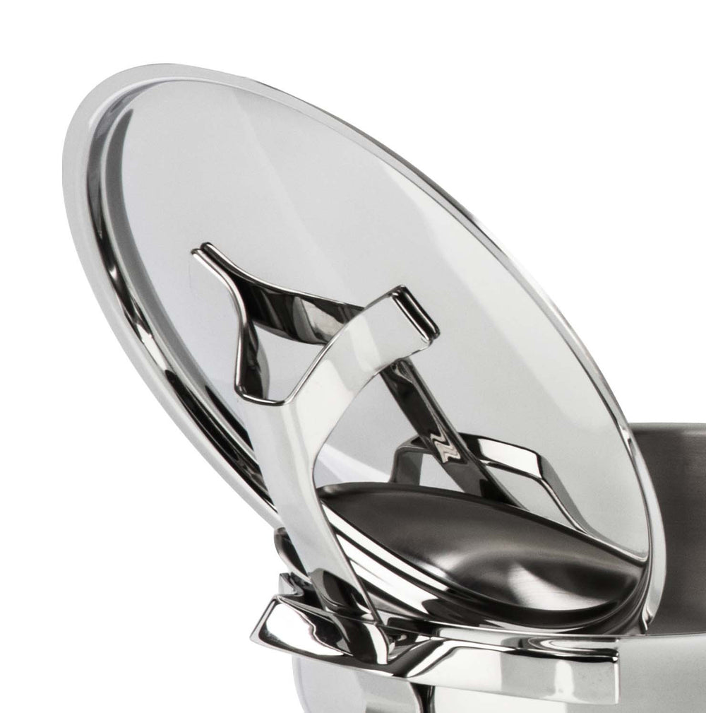 Designed by Claudio Bellini, the My Pot series from Italian manufacturer Barazzoni is modern and functional, but parries this with an almost tongue-in-cheek, charming touch of playfulness. The most striking feature is undoubtedly the elegantly curved lid handle, which almost seems to float. All handles in this range are forged from solid stainless steel and, like all external visible surfaces, are polished to a mirror finish.