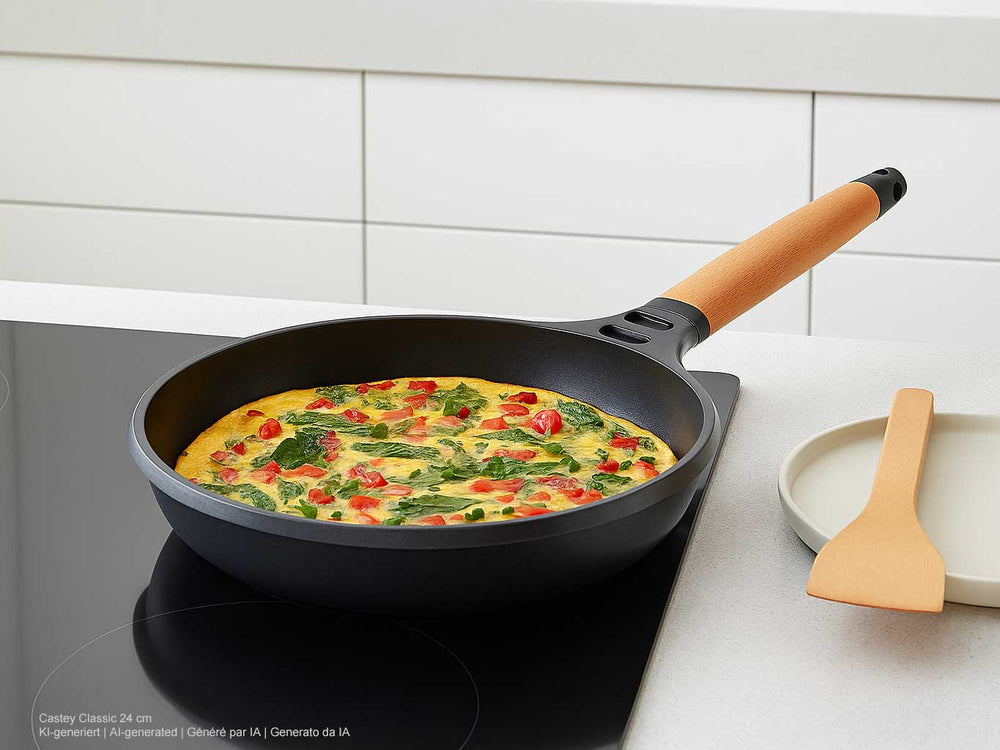 Alle Beschichtungen dieser Kollektion sind klassische Antihaftbeschichtungen auf Basis von PTFE. Falls Sie eine Pfanne mit keramischer (Antihaft-)Beschichtung suchen, finden Sie diese in der Kollektion Keramikpfannen.