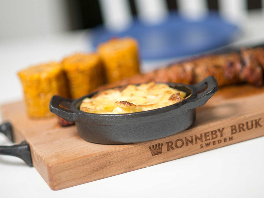 Gusseisenpfannen mit Edelstahlgriff oder integriertem Gusseisengriff sind in der Regel uneingeschränkt ofenfest.