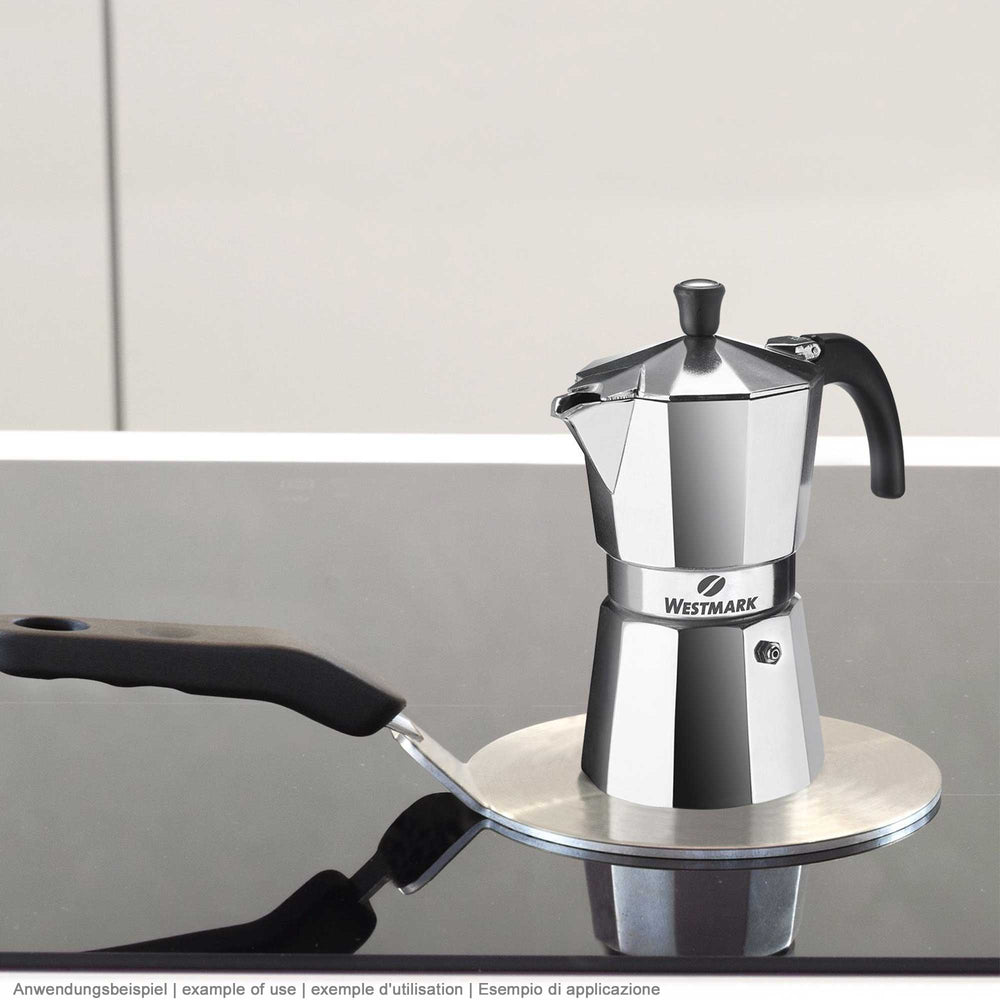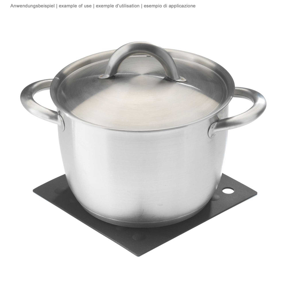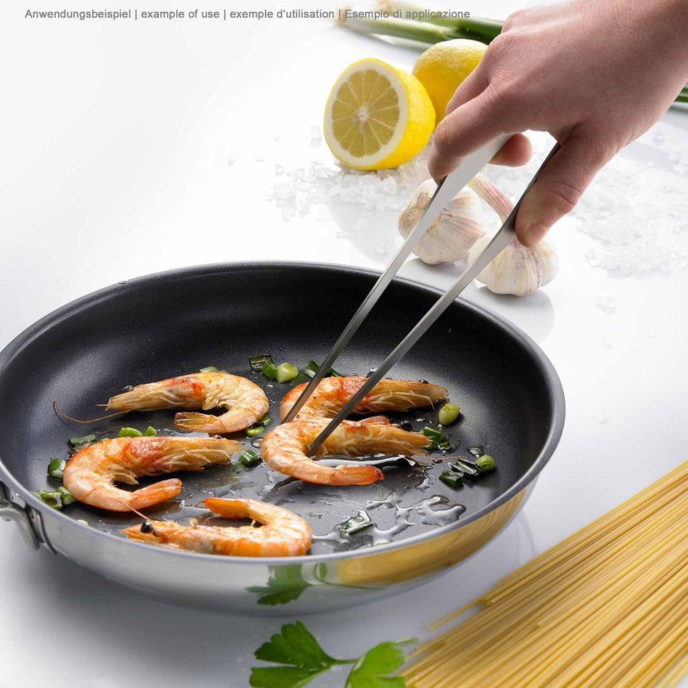 Töpfe und Pfannen aus Italien mit integrierter Deckelhalterung am Griff.