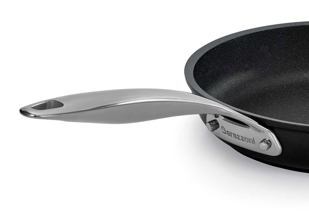 Robuste Griffe aus Edelstahl unterstreichen die professionelle Qualität der Black Titan Pro Pfannen und Töpfe.