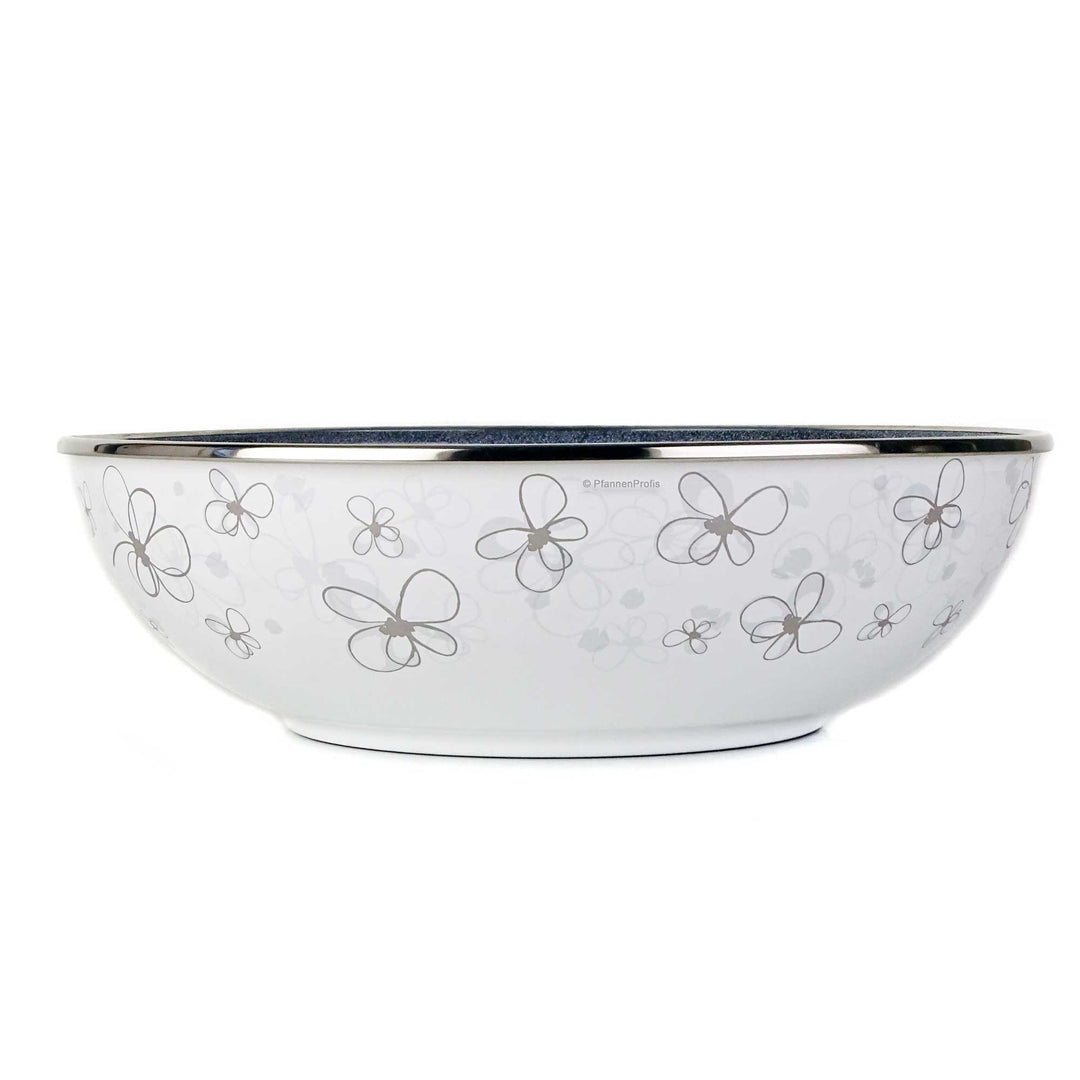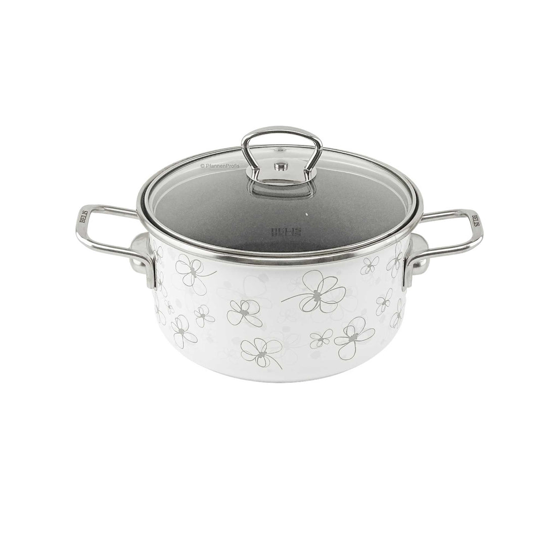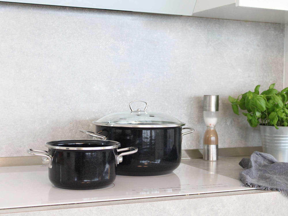High-quality and durable enamel seals the robust steel core all around, either in classic black, a trendy gray or a radiant white with a delicate floral pattern.