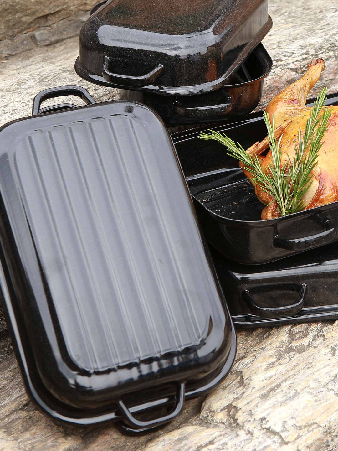 In addition to pots and pans, Belis also offers roasters made of steel enamel. You can find these and other cookware here.