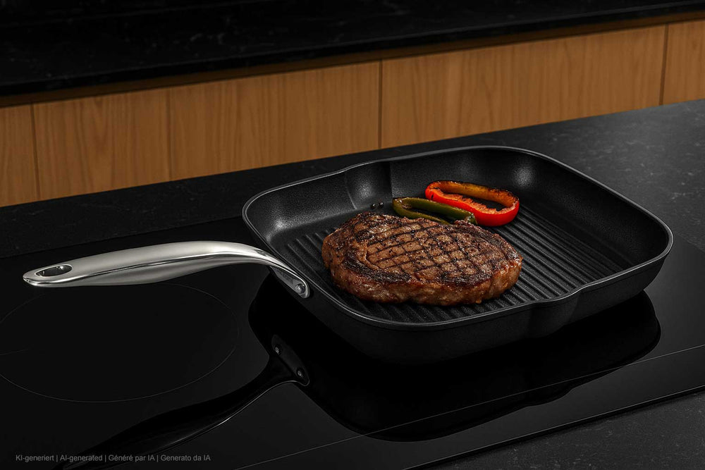 The Induction Facile Plus pans are all-round practical cookware for everyday use. The MarmoTech-Plus non-stick coating, which is reminiscent of stone, offers excellent non-stick properties and is mineral-reinforced for greater abrasion resistance.