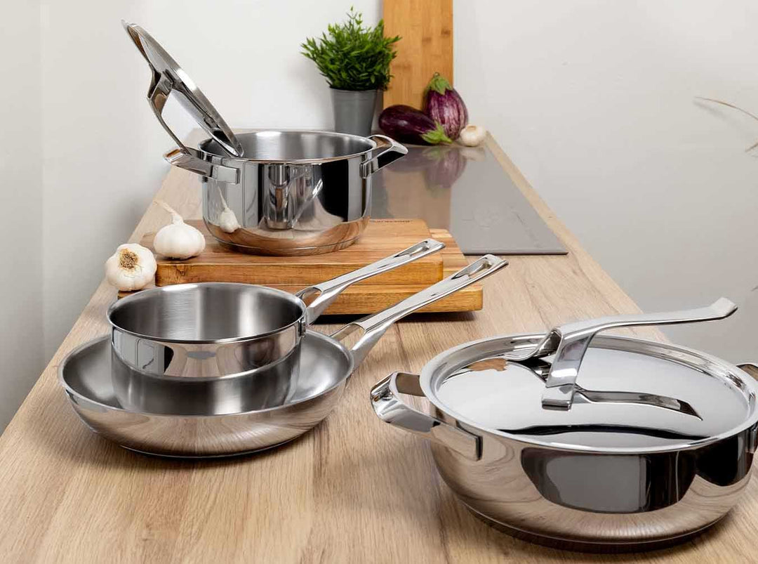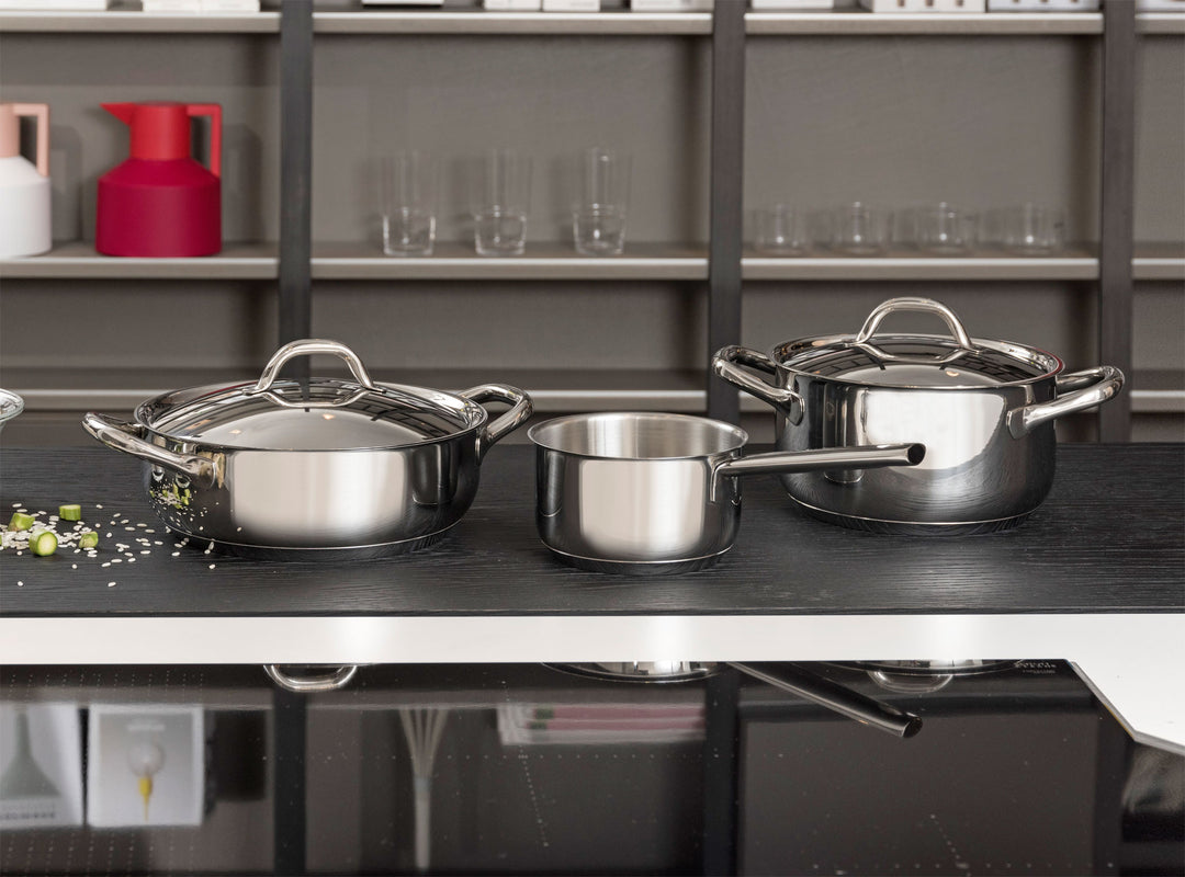 The Chef Line pots have a minimalist, professional design and are made of high-quality 18/10 stainless steel.