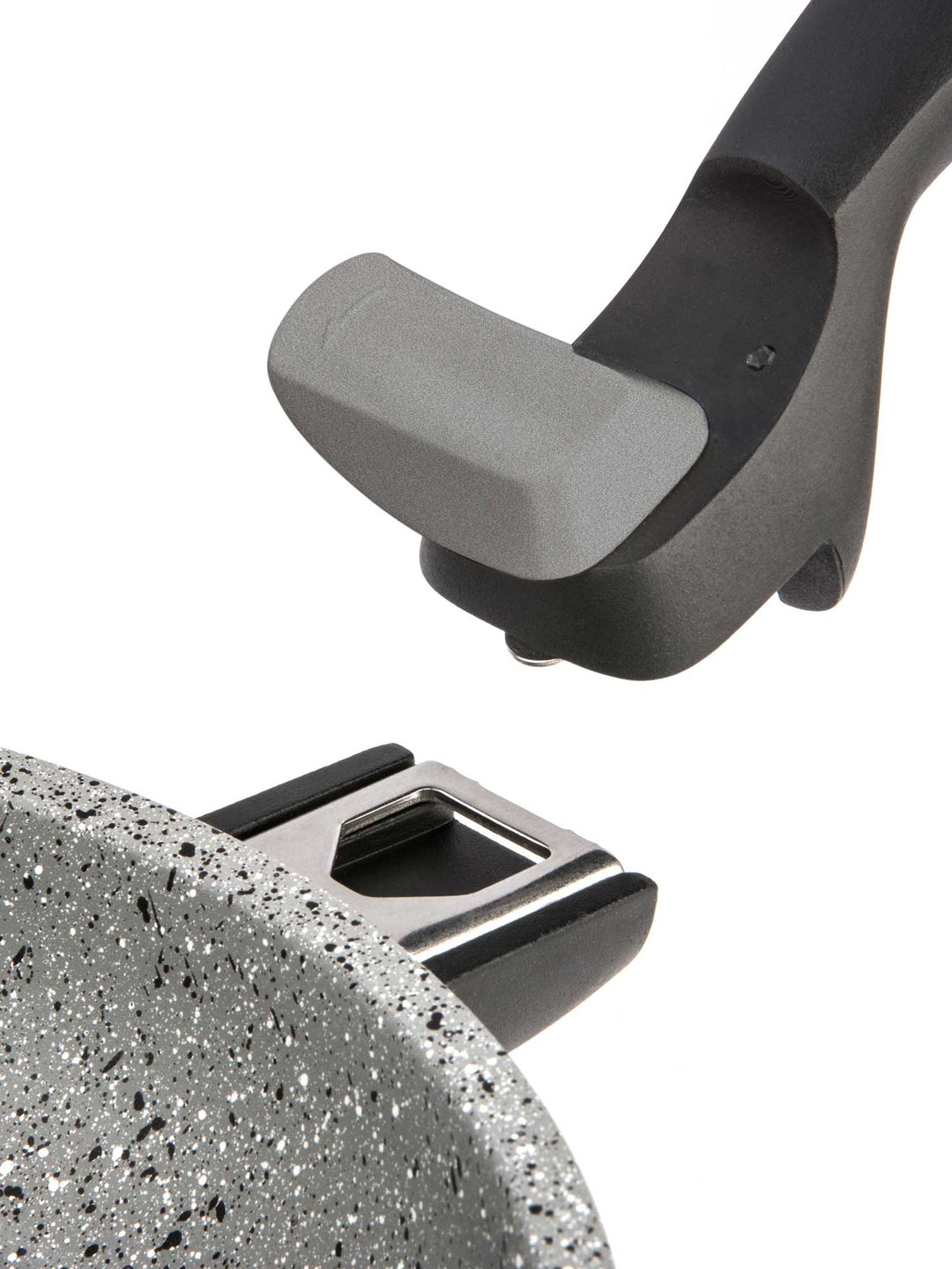 The removable handle saves you a lot of space in the kitchen cupboard. Without the handle, you can also use the pan in the oven, e.g. for gratinating.