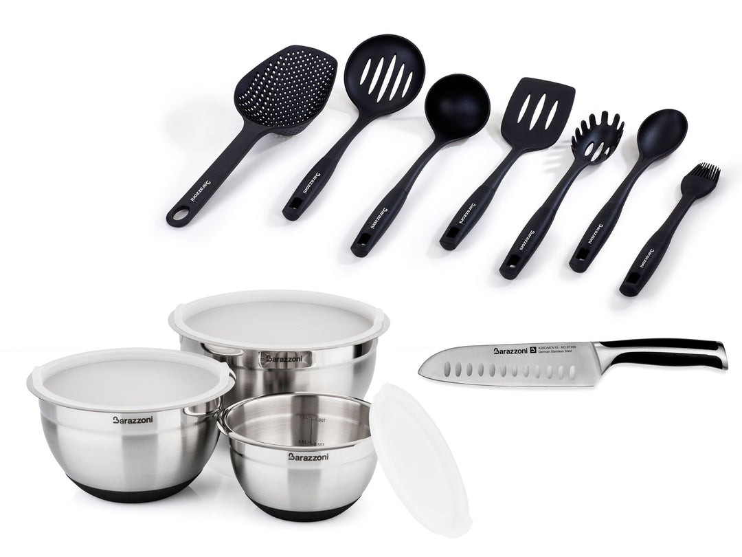 In addition to cookware, Barazzoni also offers many other products for the kitchen. For example, kitchen utensils made of plastic or silicone, which are particularly gentle on non-stick coated cookware. Our Barazzoni range also includes a selection of high-quality knives made from German knife steel as well as practical stainless steel bowls with non-slip silicone bases and tight-fitting lids.