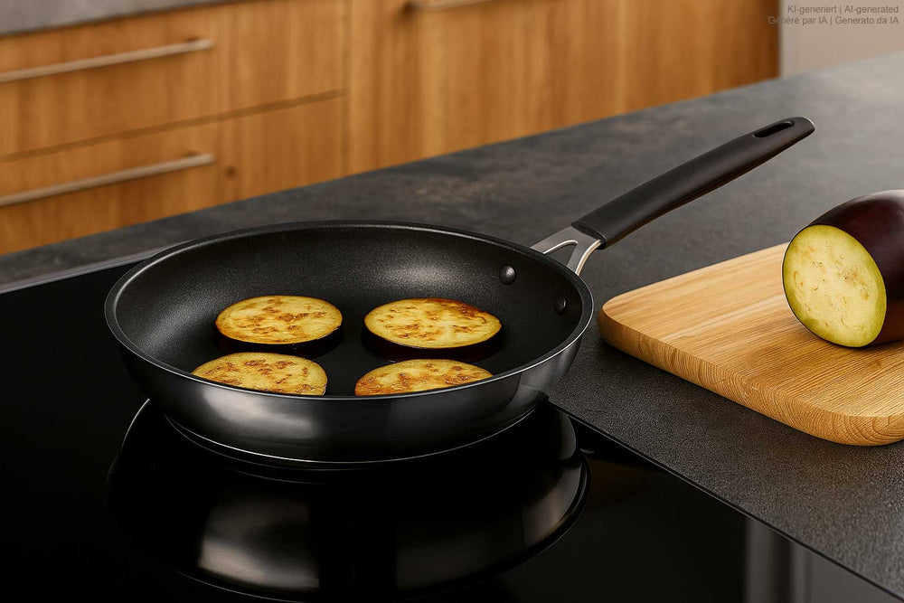 The 33-CARATI non-stick pans are forged from extra-strong cast-look aluminum and sealed with a very special non-stick coating: titanium particles and diamond dust reinforce the coating, making it even more abrasion-resistant and scratch-resistant. The professional, permanently riveted handles of the 33-CARATI pans have a comfortable, heat-insulating silicone coating that makes handling even more comfortable and safer.