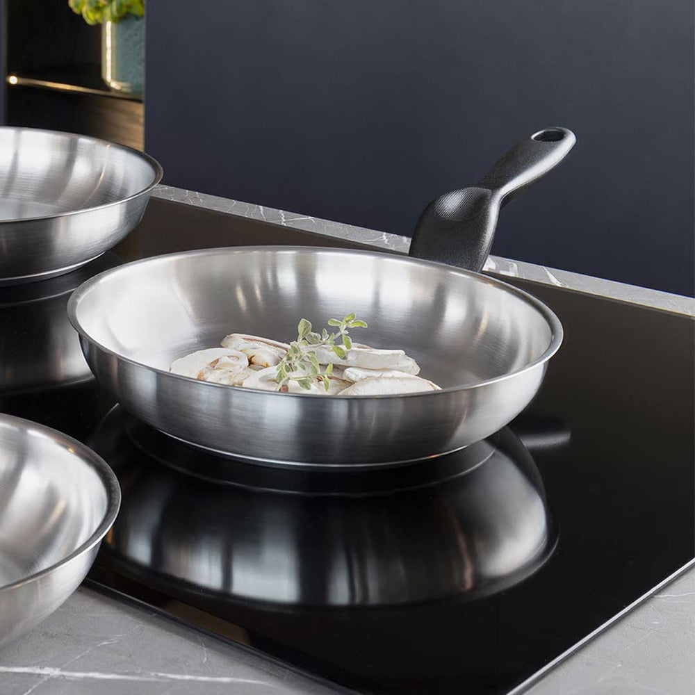 The durable LE INOXIDABILI pans from Italian manufacturer Barazzoni are made from high-quality 18/10 stainless steel. As the pans have no coating, they are ideal for searing meat and vegetables.